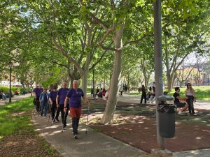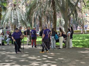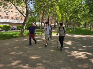 Al finalizar, ya en la calle, Alberto y los participantes en la Marcha Nórdica hicieron una demostración de la técnica de este deporte que algunos estudiantes quisieron aprender.