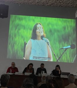 El acto empezó con la emisión de una preciosa canción de dedicada a la dana. La canción se llama «El rio no tiene culpa» de María Laura y Alejandro, con la colaboración de Greenpace. No dejéis de oírla.