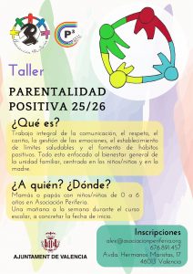 Desde la Asociación Periferia nos informan que este mes de octubre retoman el Taller de Parentalidad Positiva.