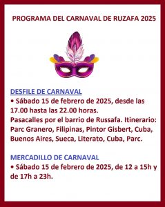 Con la información que nos han remitido las instituciones, asociaciones y colectivos que trabajan en los barrios de Monteolivete, En Corts, La Fonteta, Na Rovella, La Punta y Ciudad de las Artes y las Ciencias, que han decidido colaborar, hemos elaborado la AGENDA DE ACTIVIDADES QUATRE CARRERES – FSLyCA del mes de marzo.